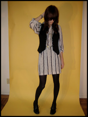 A couple of weeks ago I decided to brave the Jet Rag dollar parking lot sale once again. I had sworn it off after my last horrible experience there, but this particular Sunday afternoon had turned my brain to mush and I headed out armed with a can-do attitude and an open mind. What I found was a mountain of polyester 70's and 80's dresses with very little promise. After digging through mound after mound, I finally came across one with a subtle cream and black pattern that looked half way decent if I squinted my eyes. Finally! Something that showed some signs of life! I took the dress and my dollar to the counter and left for home feeling excited about the possibility of making over the dress into something cute and wearable.